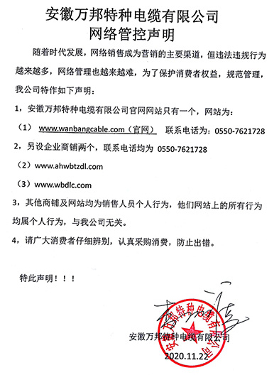 鄭重聲明:安徽萬邦特種電纜有限公司官方網站為:www_wanbangcable_com.wdnrokxp.cn,除此之外無任何子網站或合作網站,其余均為假冒偽劣。電話:0550-7621728 13485756353 地 址:安徽省天長市滁州高新技術產業開發區經四路29號